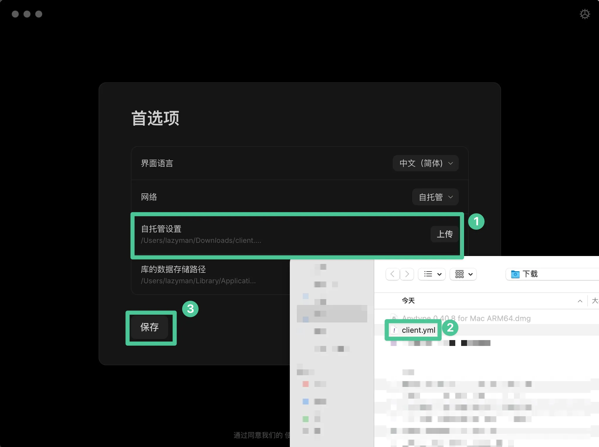 下载 any-sync-dockercompose/etc/client.yml ,并导入到客户端中,流程如下。